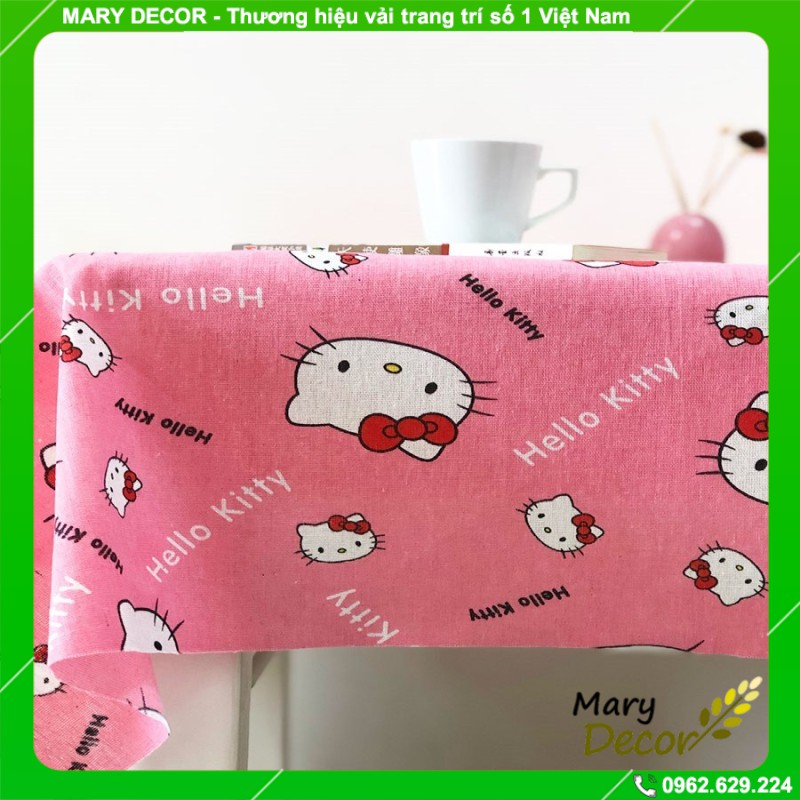 Nhà cửa & Đời sống > Trang trí nhà cửa > Khăn trải bàn || Khăn trải bàn vintage trang trí vải bố linen đẹp - họa tiết Helly Kitty KB-M08Còn hàng