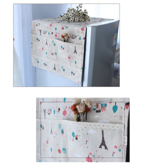 Khăn Trải Phủ Tủ Lạnh được may thêm 6 túi bên hông tiện lợi cho bạn bỏ các vậy dụng nhỏ như chìa khóa , các vật dụng trang trí , hoặc các gia vị không cần bảo quản trong tủ lạnh .