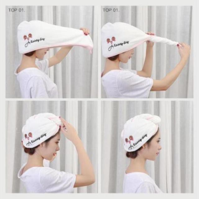 Thiết kế dạng mũ đội nên rất gọn nhẹ, dễ giặt, thích hợp cho cả tóc ngắn và tóc dài. Tiết kiệm rất nhiều thời gian cho những cô nàng bận rộn bởi khăn sử dụng đơn giản, không mất thời gian như dùng máy sấy hoặc hong khô bằng quạt…mà lại gọn gàng xinh xắn chứ