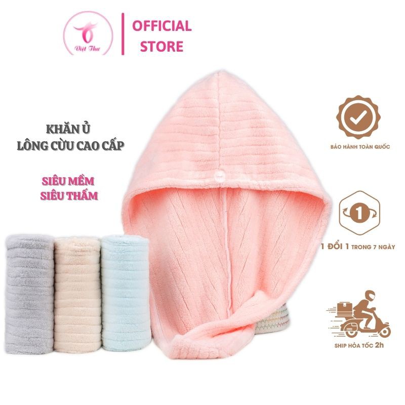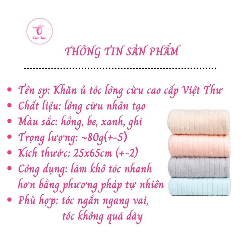 - Tên sản phẩm: Khăn ủ tóc nhanh khô VIỆT THƯ, khăn quấn tóc LÔNG CỪU cao cấp, siêu mềm, siêu thấm