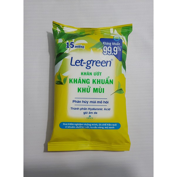 KHĂN ƯỚT KHÁNG KHUẨN -KHỬ MÙI LETGREEN 15 miếng