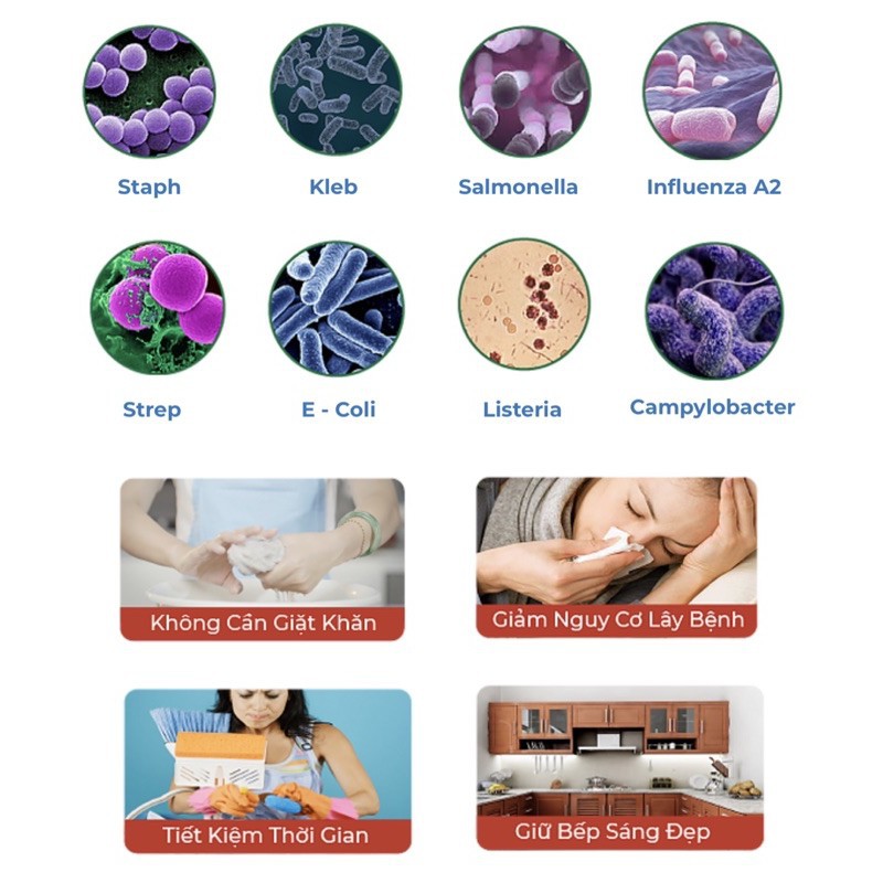 ■ Không Cần Giặt Lại Khăn Nhớp Dính, Diệt Khuẩn Tối Ưu
