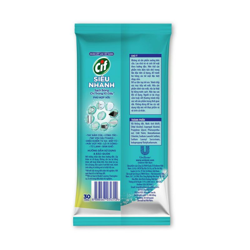 Giới thiệu Khăn Ướt Lau Vật Dụng Cif Siêu Nhanh (Túi 30 Miếng)