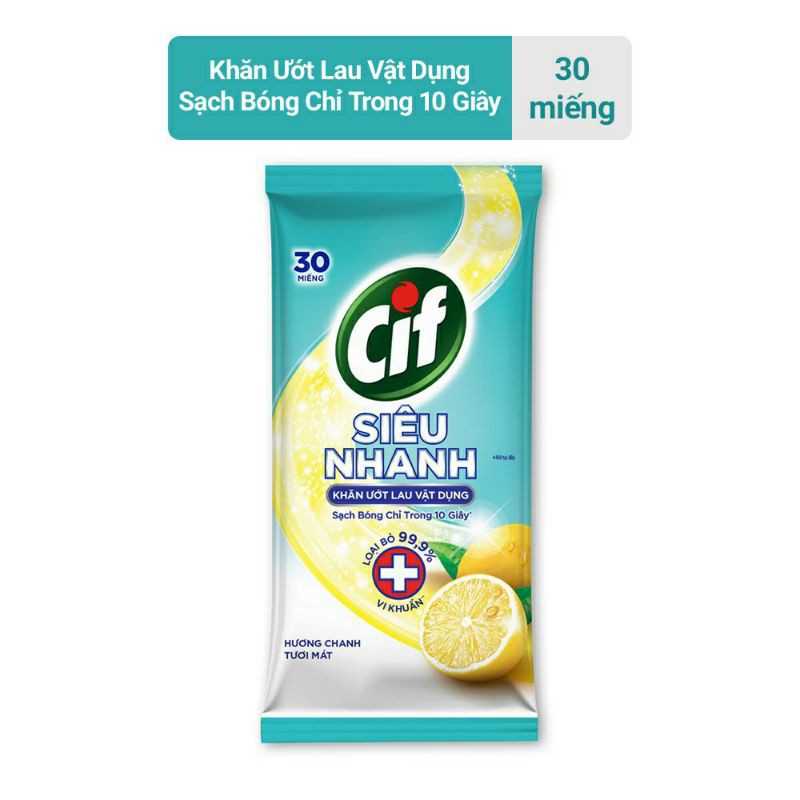 Nhà cửa & Đời sống > Dụng cụ chăm sóc nhà cửa > Khăn vệ sinh || Khăn Ướt Lau Vật Dụng Cif Siêu Nhanh (Túi 30 Miếng)Còn hàng