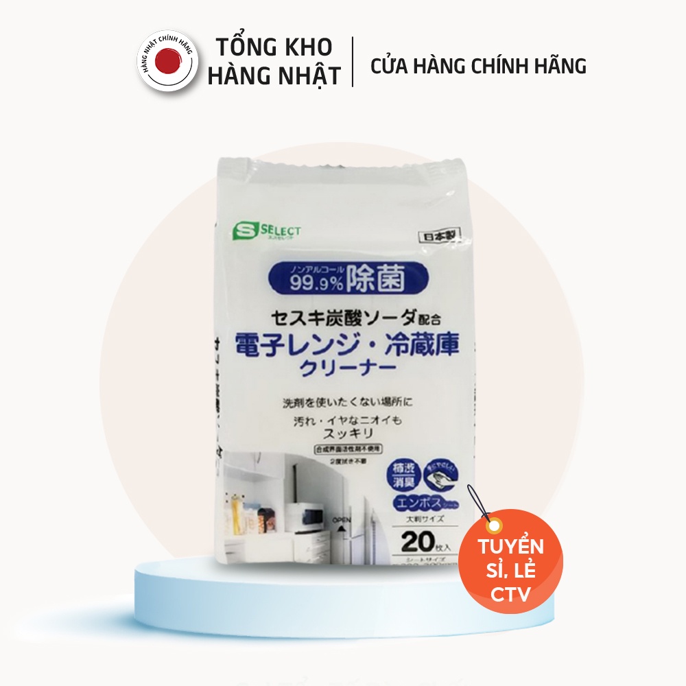 Khăn ướt vệ sinh lò vi sóng & tủ lạnh S Select Nhật Bản là loại Khăn ướt sử dụng một lần dùng để vệ sinh an toàn các vật dụng bảo quản thức ăn như tủ lạnh, lò vi sóng,…, loại bỏ 99,9% vi khuẩn.