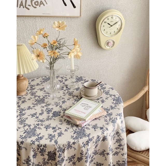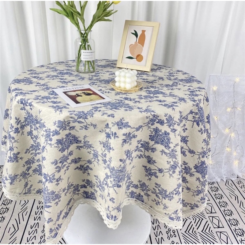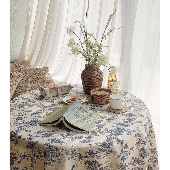 KHĂN TRẢI CANVAS HOA XANH VINTAGE☂️ Kích thước: 1.5x1.5m