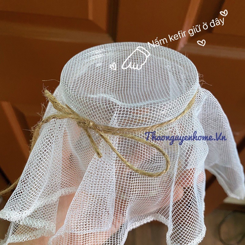 Thảo Nguyên Home có sản phẩm cực kỳ hữu dụng cho mẹ muốn nuôi nấm kefir này, màng lọc này bạn cần buộc trên miệng 1 lọ nào đóNấm kefir