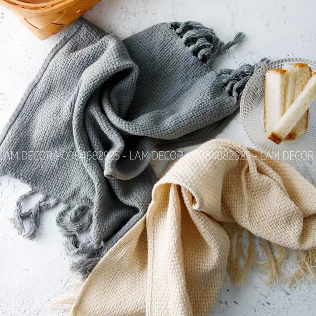 Khăn vải tua rua hai đầu là món phông nền chụp ảnh khá đẹp mắt, đặc biệt phù hợp với các bạn hay sử dụng để chụp đồ ăn, nước uống.