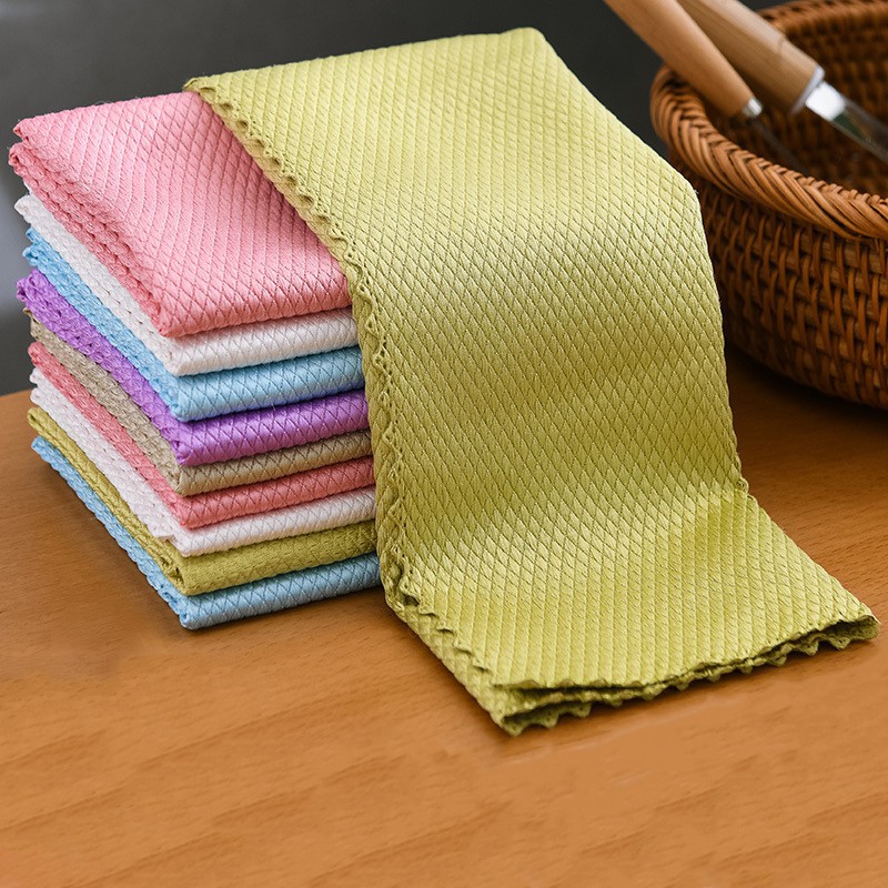 Nhà cửa & Đời sống > Dụng cụ chăm sóc nhà cửa > Khăn vệ sinh || Khăn VẢY CÁ Thấm Hút Nước Không Xù Lông Lau Bếp, Bàn Ghế, Gương Kính Khăn Lau Đa Năng Thấm Hút Tốt Size 25x25cmCòn hàng