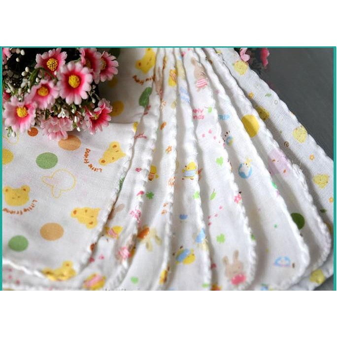 Khăn làm bằng vải xô mềm mịn, phù hợp dùng cho cả trẻ sơ sinh và trẻ nhỏ. Khăn có kích thước 32 x 32 cm.Tác dụng: Dùng để làm khăn mặt cho bé, hoặc khăn lau miệng, lau người cho bé sơ sinh.