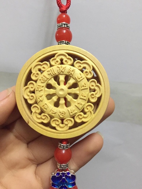 Khánh treo xe - dây treo oto 2 mặt1 mặt quan thế âm Bồ tát, 1 mặt hình bánh xe pháp luân giúp cho tài xế vững tay lái trên vạn dặm đường xa, mang bình an và tiêu tai kiếp nạn trên mọi nẻo đường.