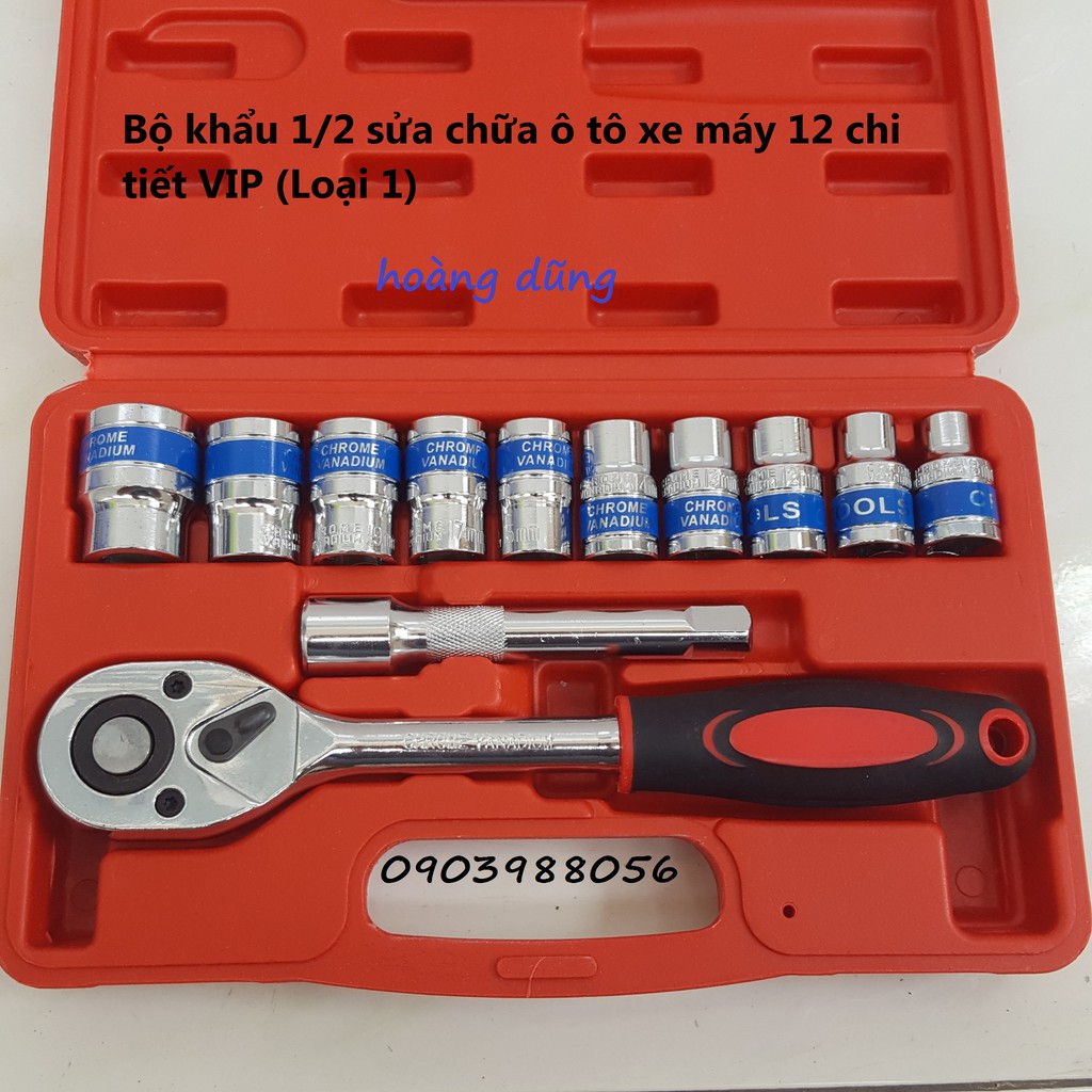 Bộ khẩu 1/2 sửa chữa ô tô xe máy 12 chi tiết VIP (Loại 1)