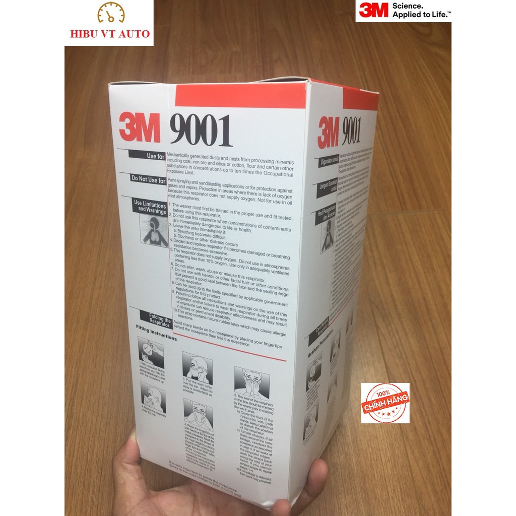 Khẩu Trang 3M 9001 Chống Bụi - Kháng Khuẩn - Ngăn Mùi Hôi, Cấu tạo màng lọc tĩnh điện, tiện dụngHIBU VT AUTO xin giới thiệu sản phẩm Khẩu Trang 3M 9001 Chống Bụi - Kháng Khuẩn - Ngăn Mùi Hôi là lựa chọn tối ưu cho những người làm trong các môi trường có nhiệt độ và độ ẩm cao, thời gian mang mặt nạ lâu, nhất là các môi trường đúc chảy kim loại, phòng lab, nông nghiệp, hóa dầu, những nơi có sự hiện diện của bụi và hóa chất, hơi hữu cơ.