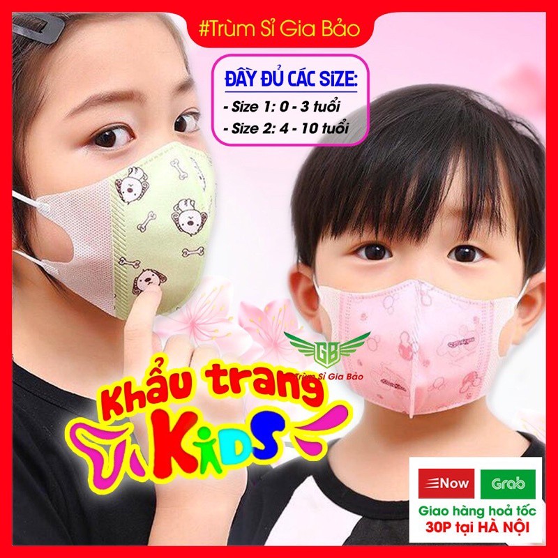 - Khẩu trang sử dụng cho các bé với hai size 0-3 tuổi và 4-12 tuổi