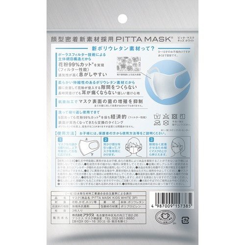 Giới thiệu KHẨU TRANG LỌC KHÓI BỤI PITTA NHẬT BẢN CHO BÉ 3 TUỔI TRỞ LÊN (MÀU TRẮNG - 3 CÁI/ TÚI)