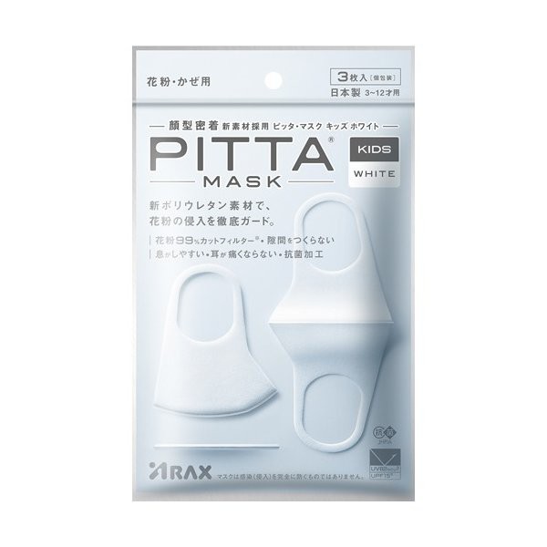 KHẨU TRANG LỌC KHÓI BỤI PITTA NHẬT BẢN CHO BÉ 3 TUỔI TRỞ LÊN (MÀU TRẮNG - 3 CÁI/ TÚI)