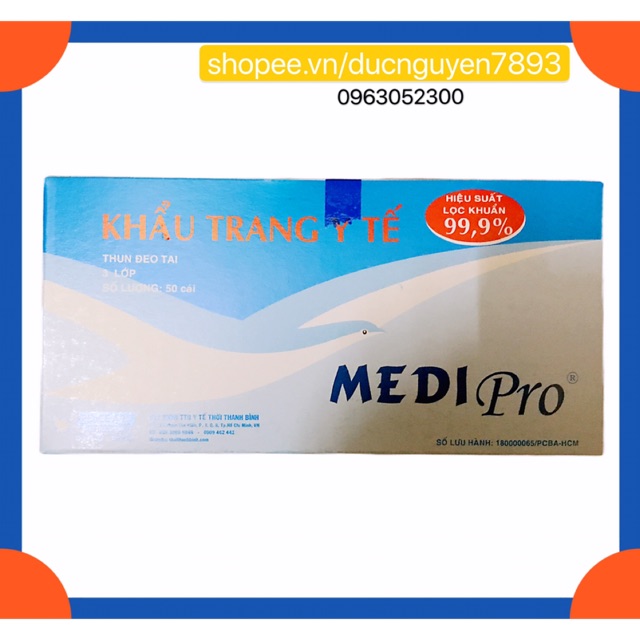 Nhà cửa & Đời sống > Dụng cụ & Thiết bị tiện ích > Dụng cụ > Khác || KHẨU TRANG MEDIPRO LỌC KHUẨN 99% HỘP 50 CÁICòn hàng