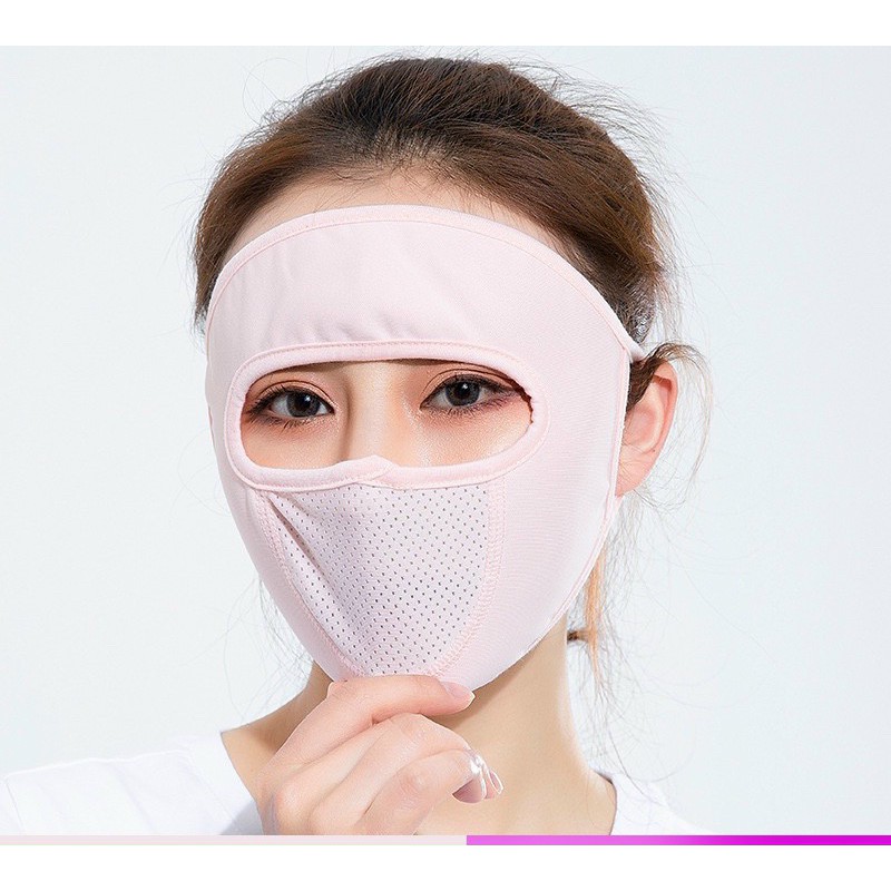 - Che kín cả khuôn mặt luôn nhé, mà lại ko bí bách khó chịu đâu ạ, ngăn được hết bụi bẩn nắng gió nha.