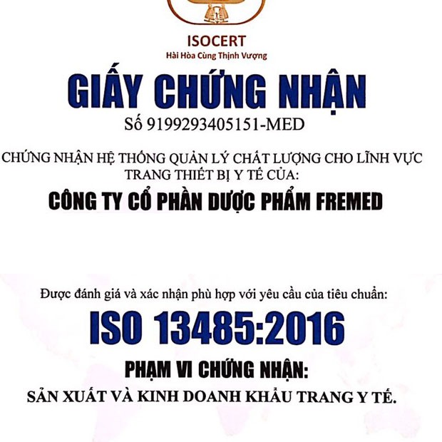 • Tiêu chuẩn khẩu trang: ISO13485:2016