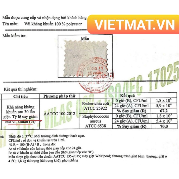 4. Kiểm định kháng khuẩn đến 30 lần giặt tại Việt Dệt may Tp.HCM.