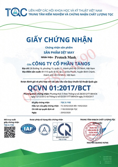 - Tiêu chuẩn hợp quy về chất lượng an toàn QCVN 01.02017/BCT số TQC 5.1182