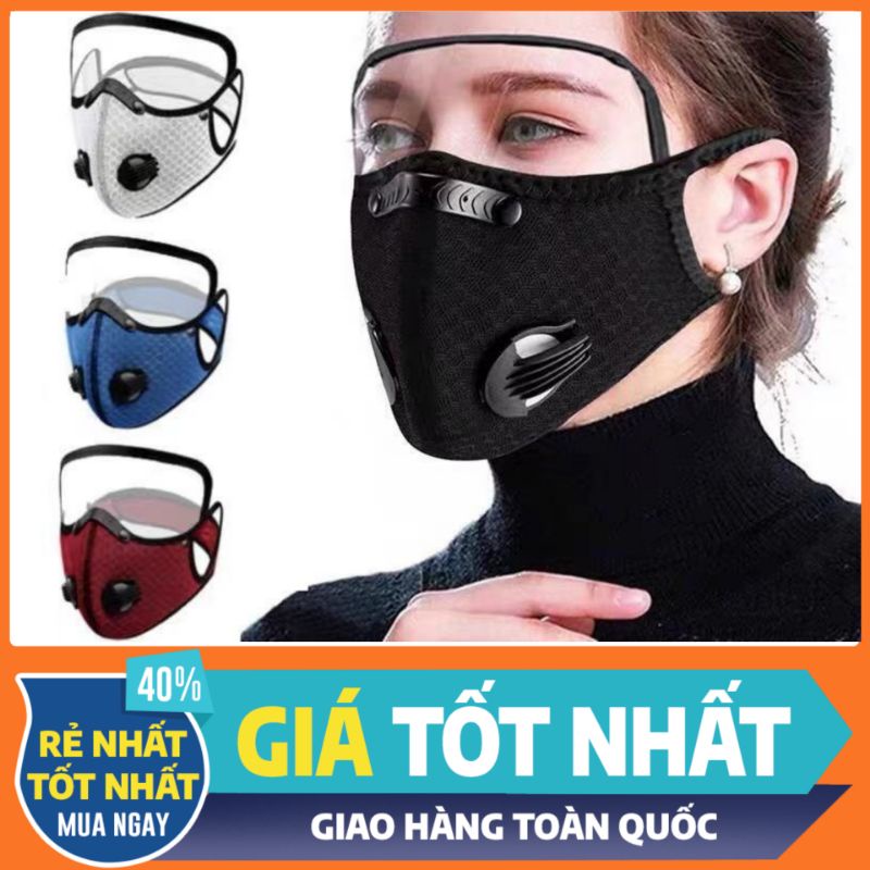 Nhà cửa & Đời sống > Dụng cụ & Thiết bị tiện ích > Găng tay, kính bảo hộ & mặt nạ || Khẩu trang vải Nano kháng khuẩn có 2 van thở kèm kính bảo hộ che mặt tháo lắp đa năng [CEC Store]Còn hàng