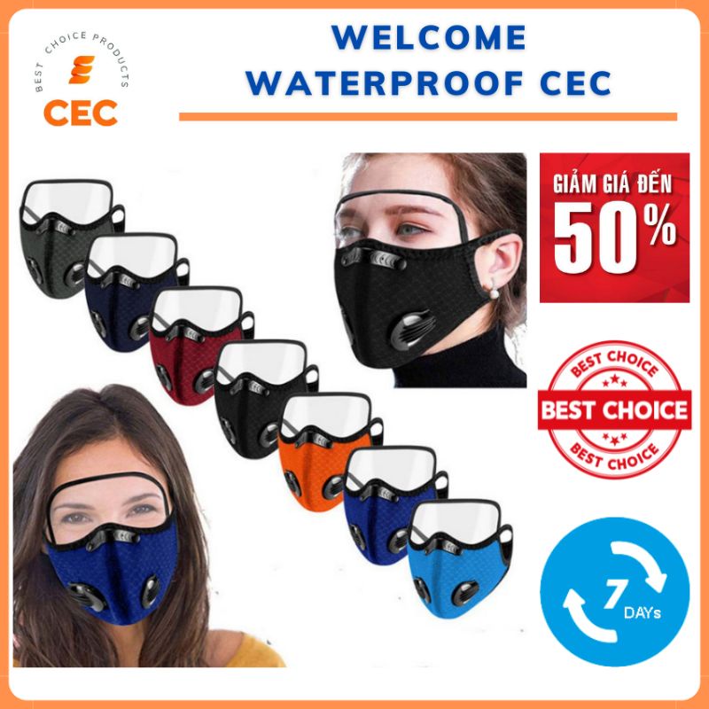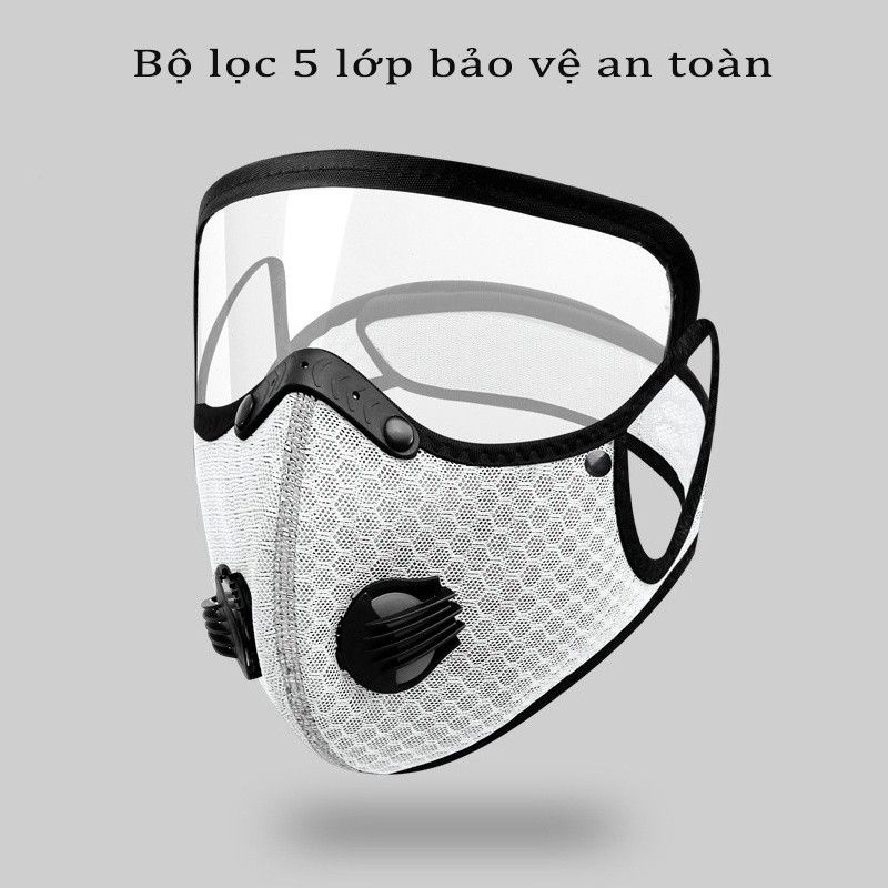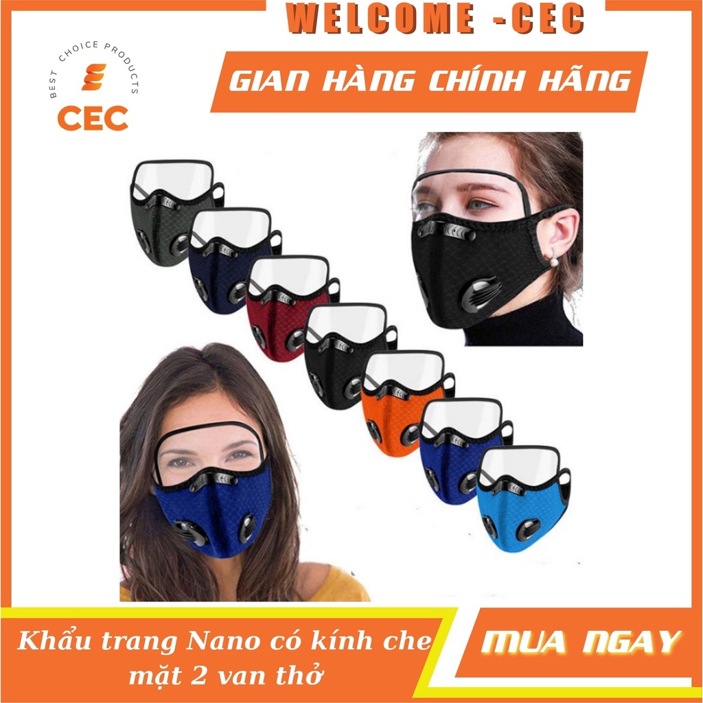 Khẩu trang vải Nano kháng khuẩn có 2 van thở kèm kính bảo hộ che mặt tháo lắp đa năng [CEC Store]