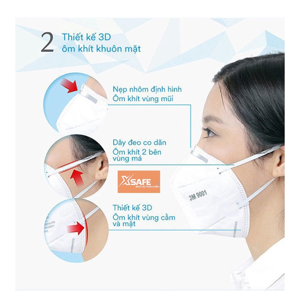 Khẩu trang y tế 3M 9001A form 3D kháng khuẩn, chống bụi mịn, phòng dịch - chính hãng - xsafe