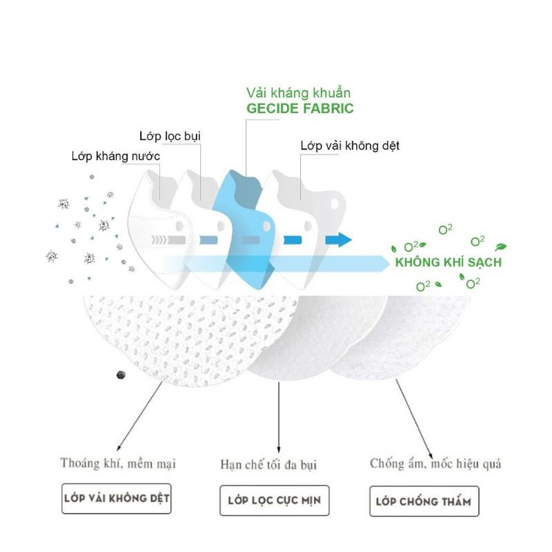 4 Lớp Vải Không Dệt Kháng Khuẩn Cao Cấp Định Lượng Chuẩn Quốc Tế, Luôn dầy hơn hàng nội địa.