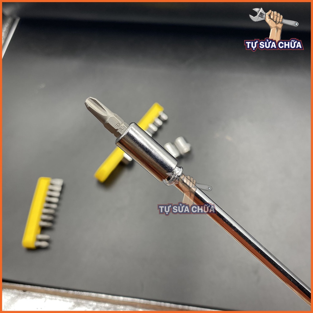 Đây là 1 bộ tuýp đa năng cán vặn chữ T, rất tiện dụngCán chữ T giúp ta vặn ốc vít dễ hơn so với tu vít thông thường và không bị trượt khi tay tiết mồ hôi, hoặc tay có dầu nhớt