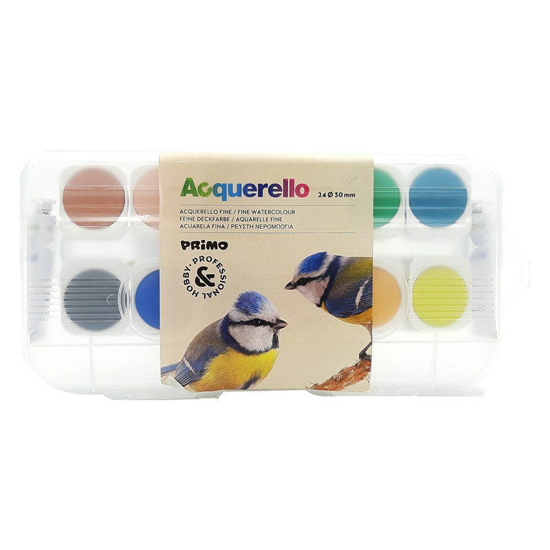 Bộ Khay 24 Màu Nước Dạng Nén Acquerello (Kèm 1 Cọ Và 2 Tuýp Poster Paint Trắng 7,5ml) Primo 137A24GMH