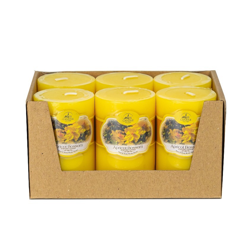 Nhà cửa & Đời sống > Trang trí nhà cửa > Nến & đồ đựng nến || Khay 6 nến thơm trụ tròn D5H8 Miss Candle NQM0819 5 x 8 cm (Vàng, hương hoa mai)Còn hàng