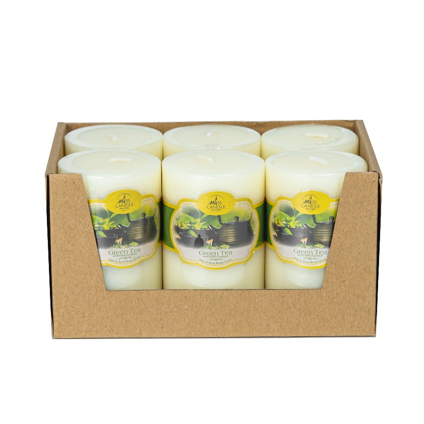 Nhà cửa & Đời sống > Trang trí nhà cửa > Nến & đồ đựng nến || Khay 6 nến thơm trụ tròn D5H8 Miss Candle NQM0819 5 x 8 cm (Vàng nhạt, hương trà xanh)Còn hàng