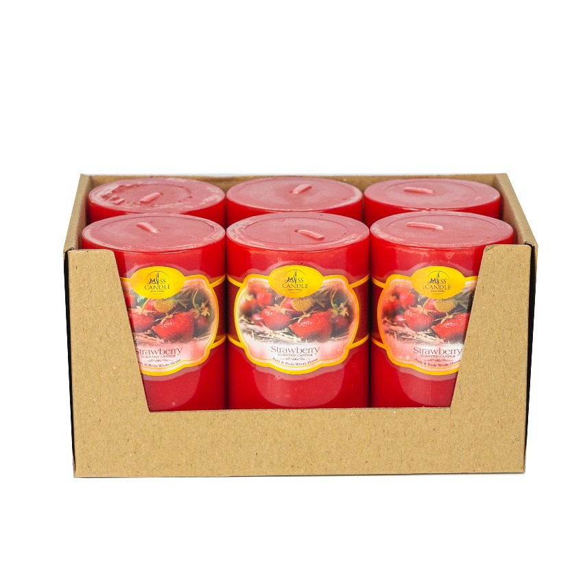 Khay 6 nến thơm trụ tròn D5H8 Miss Candle FtraMart (Đỏ,hương dâu tây)