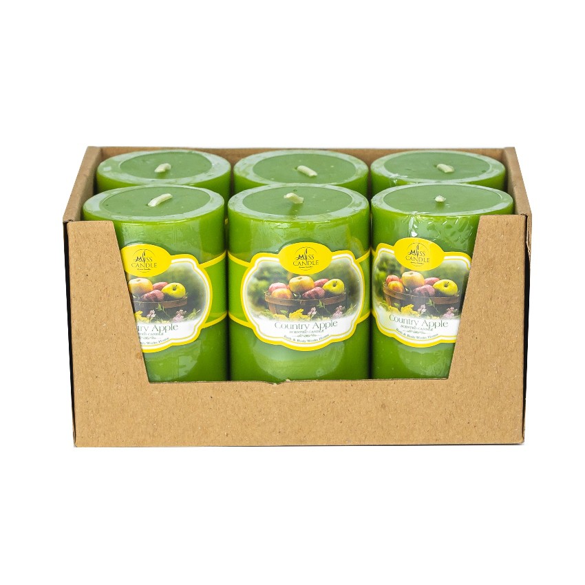 Nhà cửa & Đời sống > Trang trí nhà cửa > Nến & đồ đựng nến || Khay 6 nến thơm trụ tròn D5H8 Miss Candle NQM0819 5 x 8 cm (Xanh lá, hương táo)Còn hàng