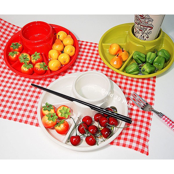 Nhà cửa & Đời sống > Bộ đồ bàn ăn > Dĩa || Khay ăn 3 ngăn cho bé có kèm khay để cốc và khay để thìa dĩa - màu đỏCòn hàng