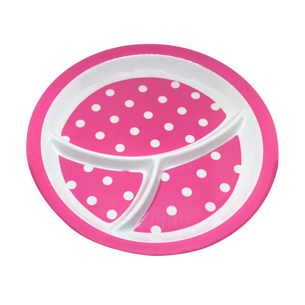 Khay ăn chia 3 ngăn họa tiết chấm bi, dáng tròn màu hồng đậm - Hàng nội địa Nhật