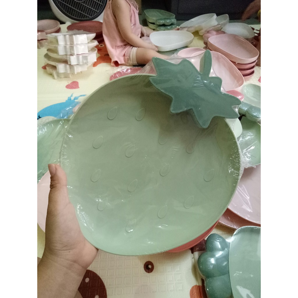 Nhà cửa & Đời sống > Bộ đồ bàn ăn > Dĩa || Khay ăn dặm, đĩa đựng hoa quả bằng nhựa hình trái dâu tâyCòn hàng