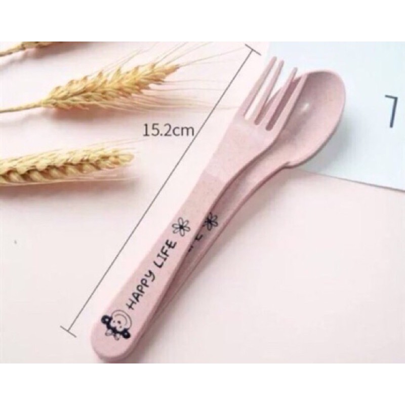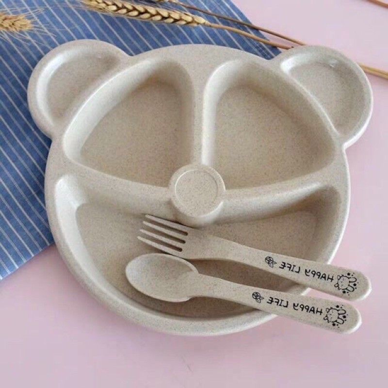 Khay ăn dặm lúa mạch ( kèm thìa dĩa) cho bé hình gấu.Chất liệu: lúa mạch.