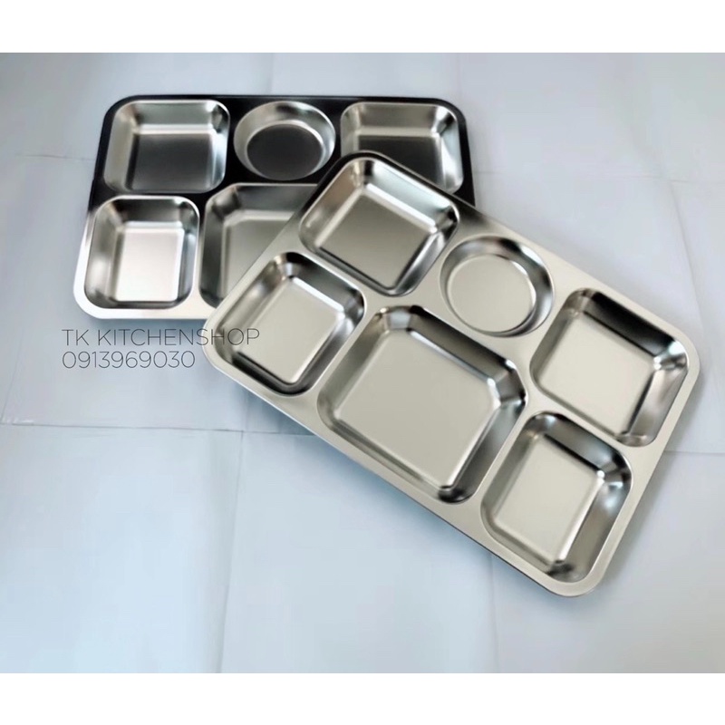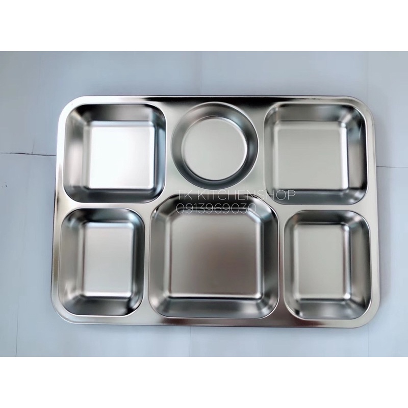 Khay ăn inox 6 ngăn KT 38x27cm hàng siêu dày đặc biệt chất liệu inox cao cấp sáng bóng,phù hợp trong suất ăn công nghiệp