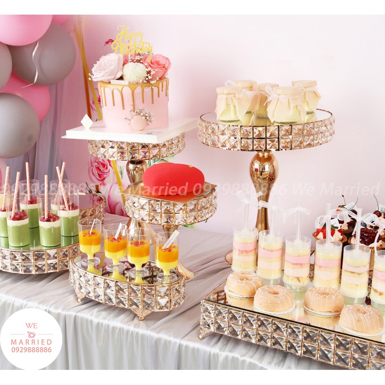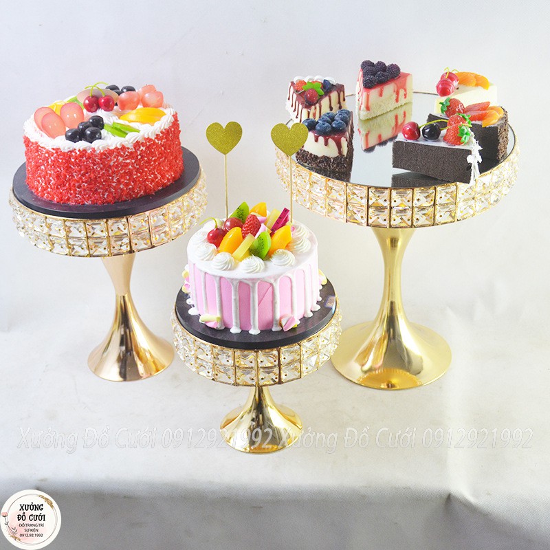 Khay Bánh Bộ 3 Gương Mắt Đá Vuông KBLC002Chất liệu:khung kim loại, mặt gương, đá pha lê