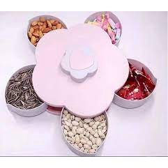 khay bánh kẹo tết , khay mứt tết bằng nhụa cao cấp an toàn 1 tầng 2 tầng hình cánh hoa có giá đỡ điện thoại xinh xắn