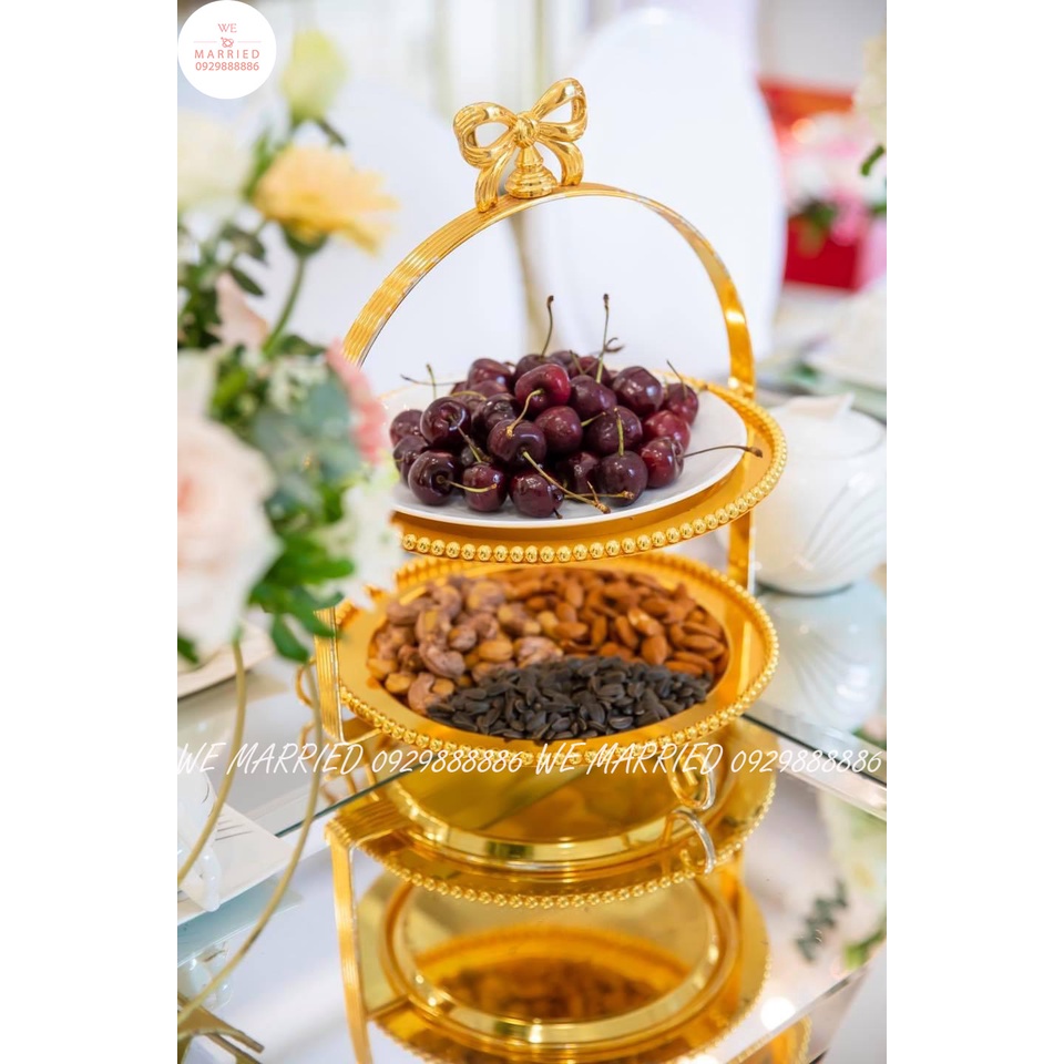 Khay Bánh Nơ 3 Tầng Đĩa Tròn (Màu Vàng, Bạc)