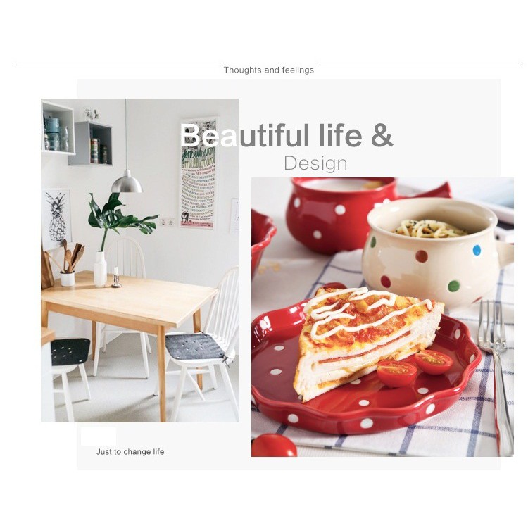 Nhà cửa & Đời sống > Bộ đồ bàn ăn > Dĩa || Khay bát đĩa tay cầm họa tiết chấm bi kẹo ngọt nhiều màu cuteCòn hàng