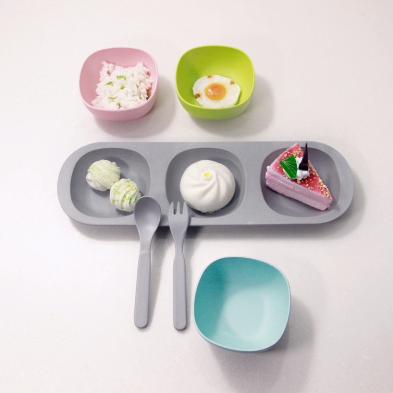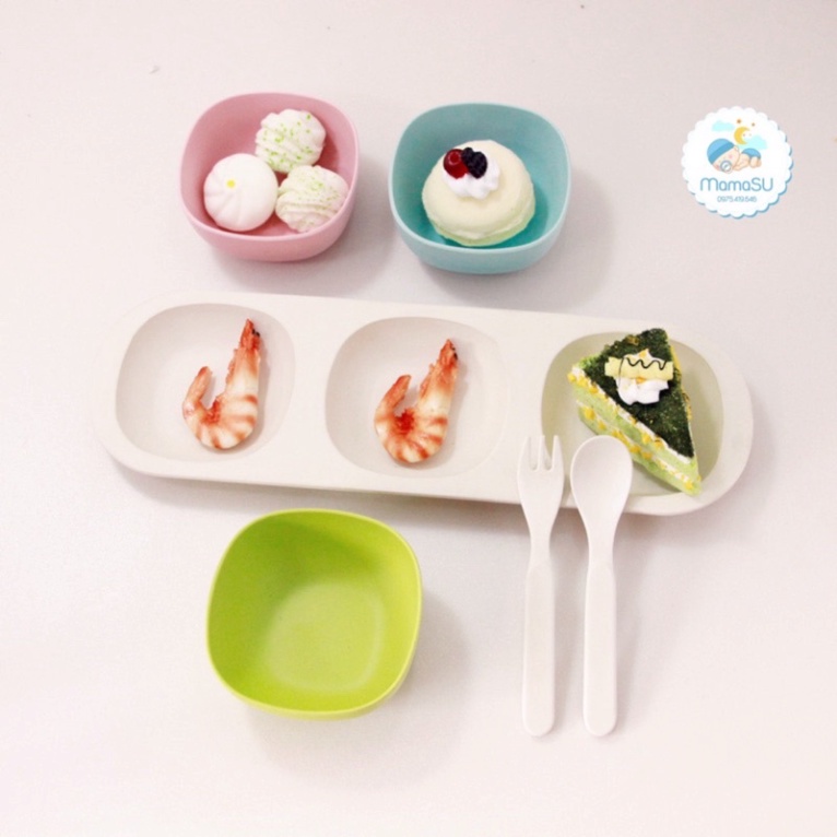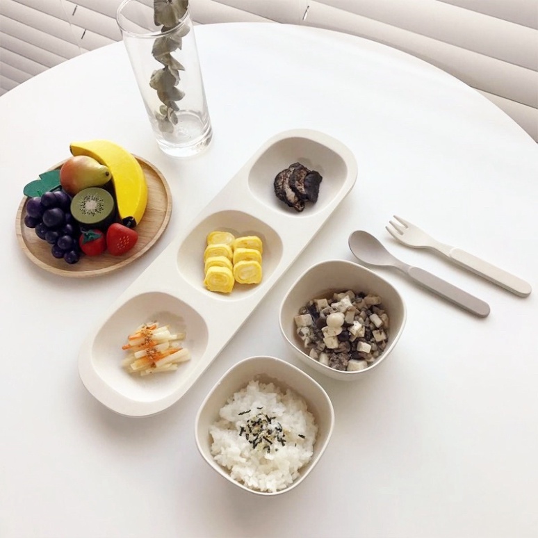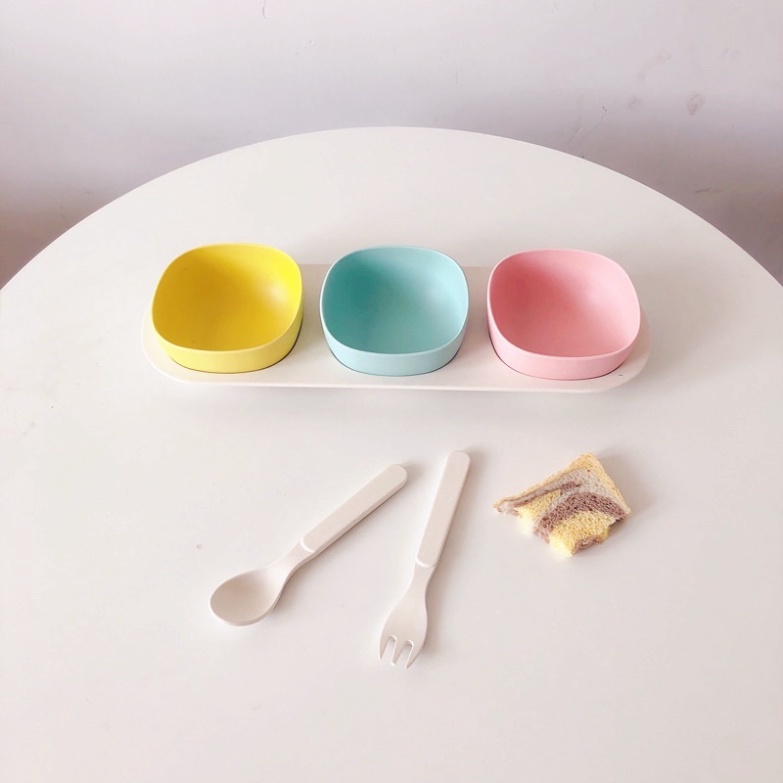 Giới thiệu Khay bát thìa dĩa ăn dặm sợi tre cho bé phong cách Hàn Quốc