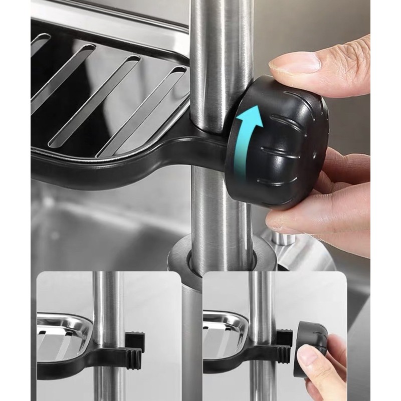 Ai ngại khoan tường hoặc các giá nhựa, thủy tinh lâu lâu đóng cặn canxi nhìn chướng mắt lắm thì đổi qua cái inox này nha- gắn trực tiếp lên thanh inox vòi rửa khỏi đục đẽo luôn