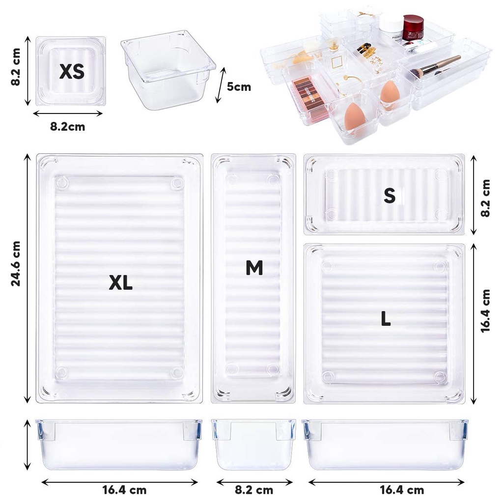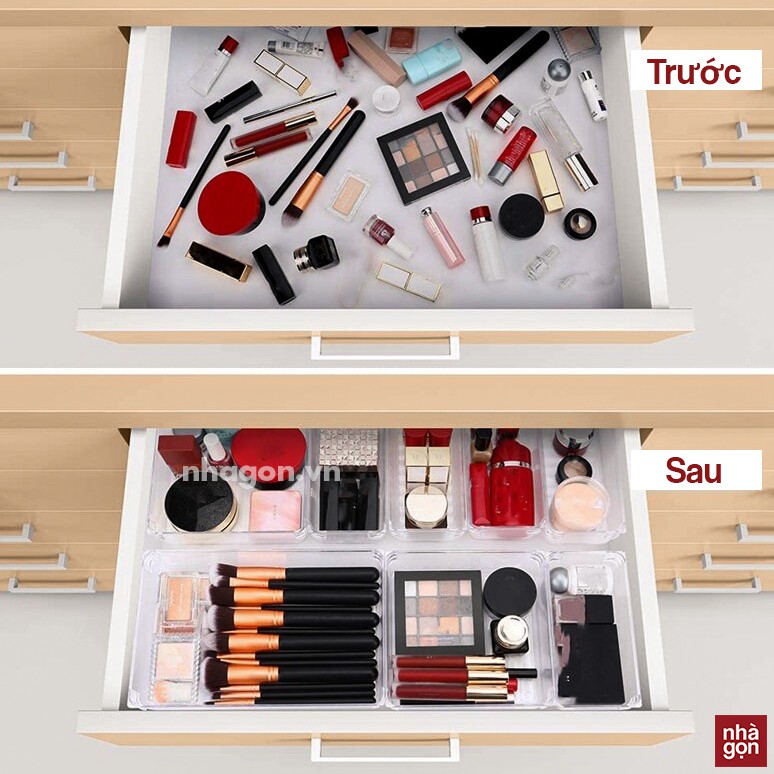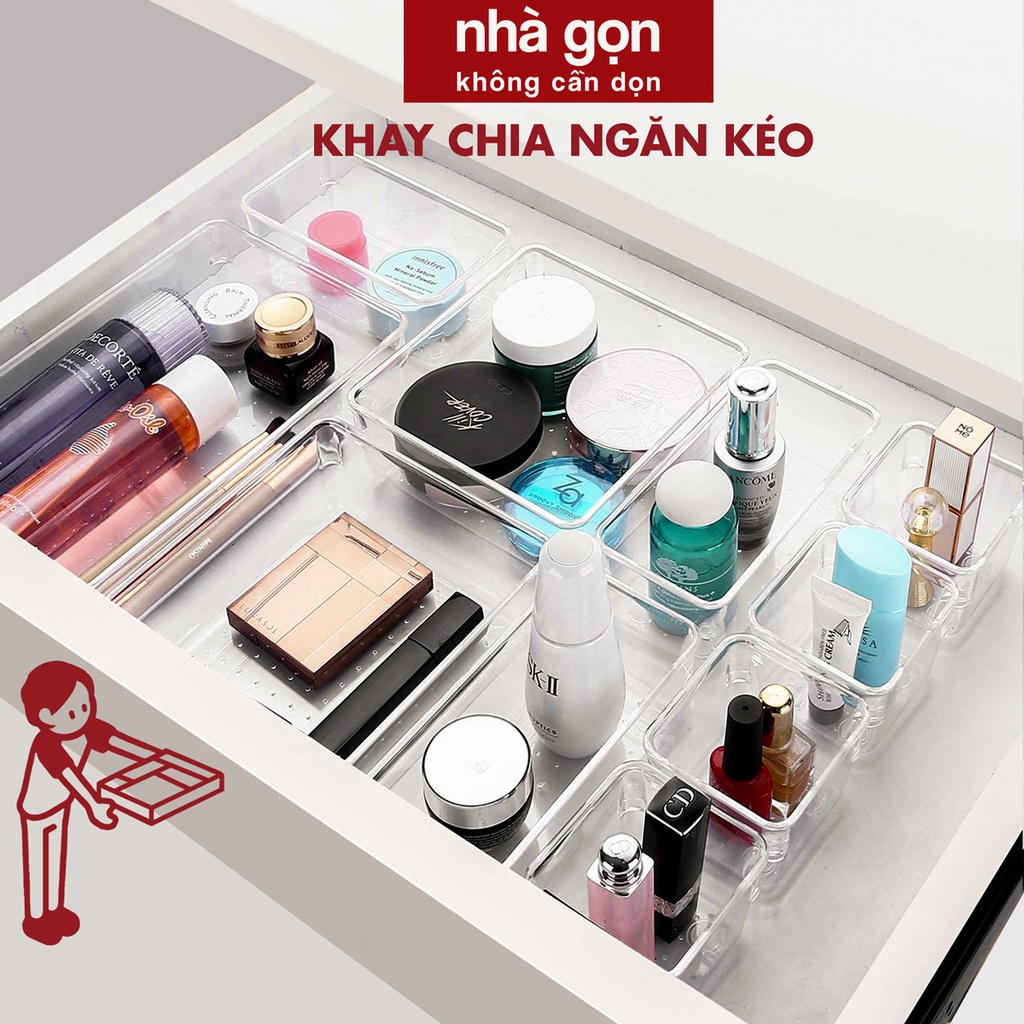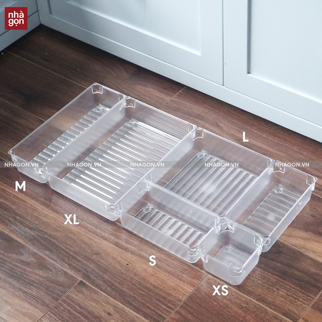 Bộ Khay Chia Ngăn Kéo Tủ Nhiều Size trong suốt, mica chống xước dễ sử dụng - NHÀ GỌN KHÔNG CẦN DỌN