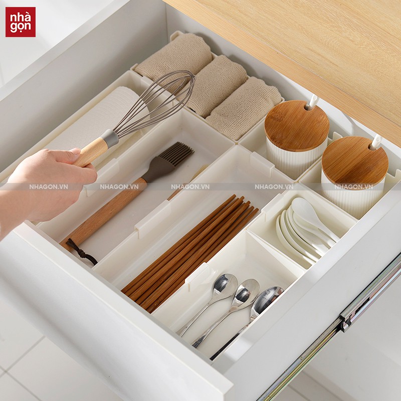 Nhà cửa & Đời sống > Nội thất > Tủ bếp || Bộ Khay Chia Ngăn Kéo Tủ Nhiều Size màu trắng, dễ sử dụng gọn gàng nhựa bền - NHÀ GỌN KHÔNG CẦN DỌNCòn hàng