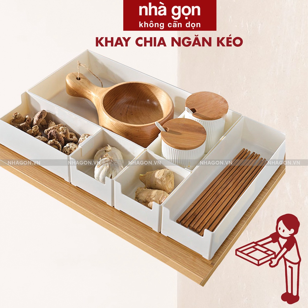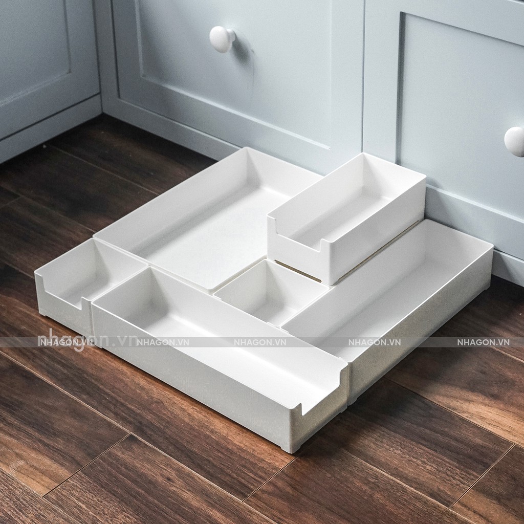 Bộ Khay Chia Ngăn Kéo Tủ Nhiều Size màu trắng, dễ sử dụng gọn gàng nhựa bền - NHÀ GỌN KHÔNG CẦN DỌN