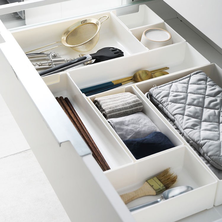 - 4 kích thước để linh hoạt sắp xếp khay vào từng ngăn kéo khác nhau
